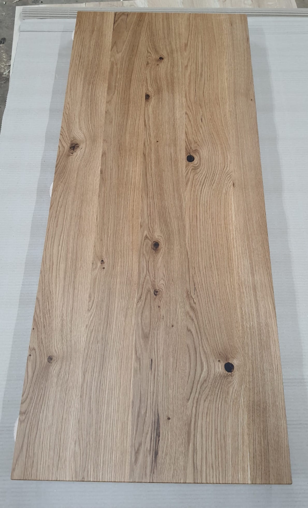 - Sęki i naturalne pęknięcia uzupełnione profesjonalnie czarną szpachlą, podkreślającą unikalny charakter drewna.