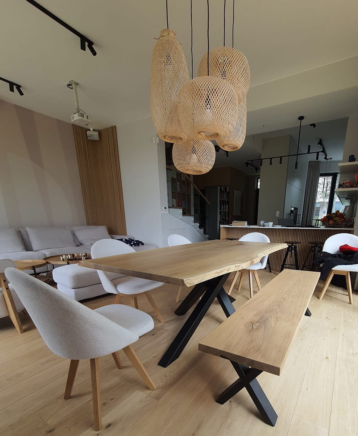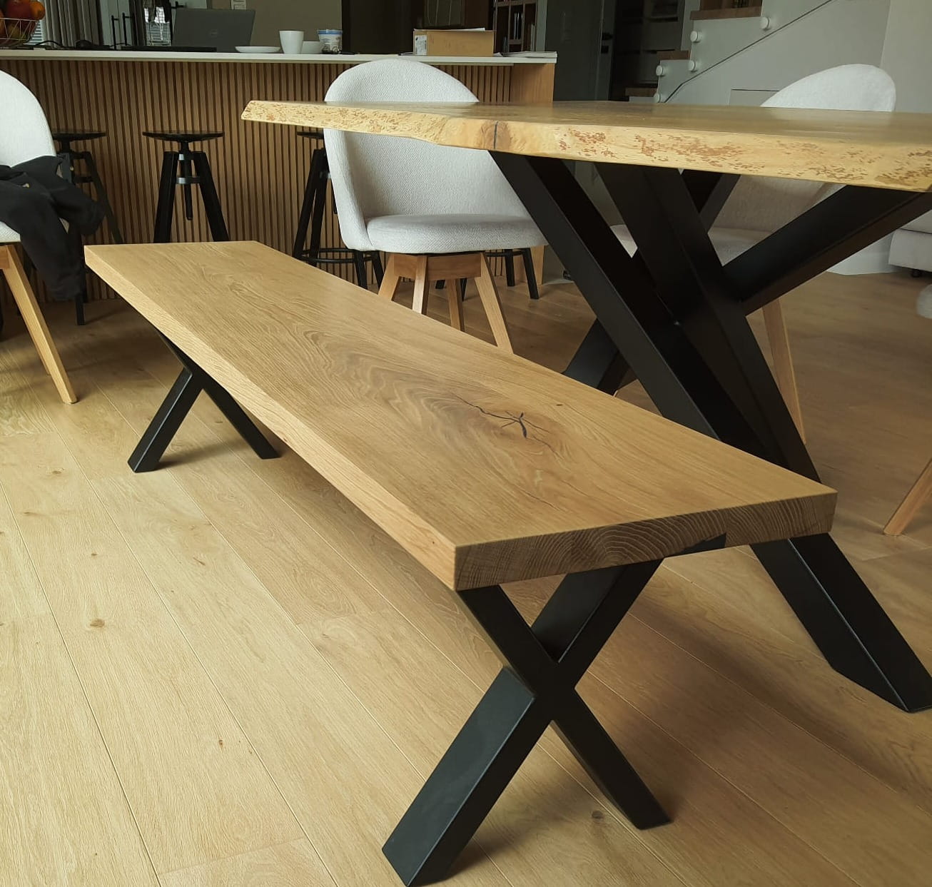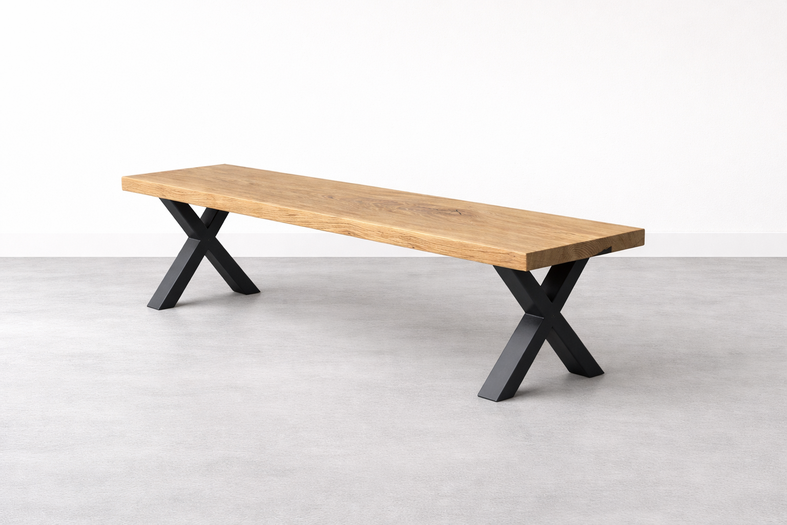 Nowoczesna ławka z siedziskiem z litego drewna dębowego i stalową podstawą to funkcjonalny i estetyczny dodatek do wnętrz mieszkalnych, przestrzeni komercyjnych czy przedpokoju. Prosta forma i możliwość wyboru długości sprawiają, że ławka idealnie dopasuje się do różnych aranżacji.
