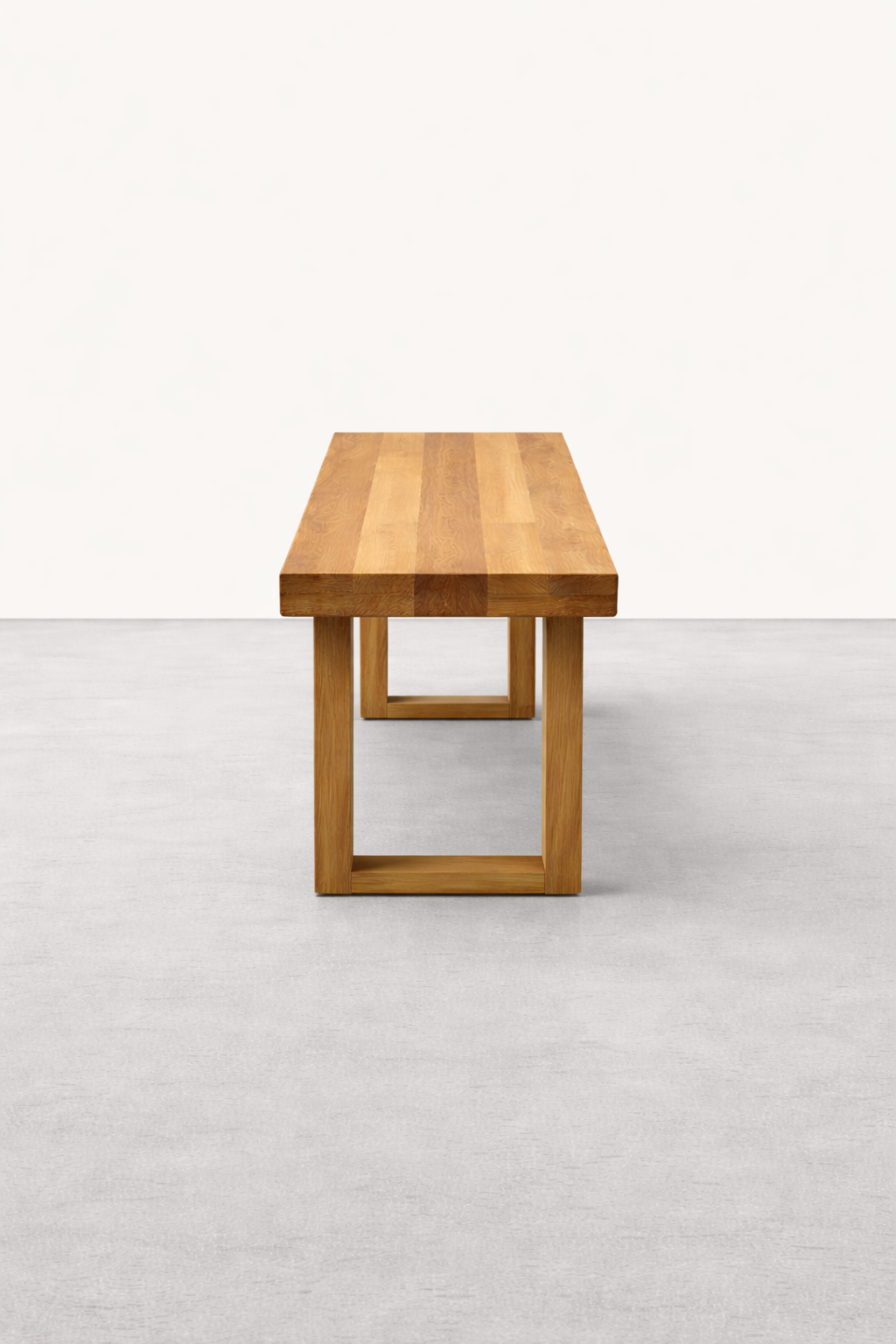 Solidna ławka z litego drewna dębowego, wykonana w minimalistycznym stylu. Idealna jako ławka do przedpokoju, jadalni, stołu lub wnętrz w stylu nowoczesnym i skandynawskim. Naturalne drewno dębowe gwarantuje trwałość i ponadczasowy wygląd.