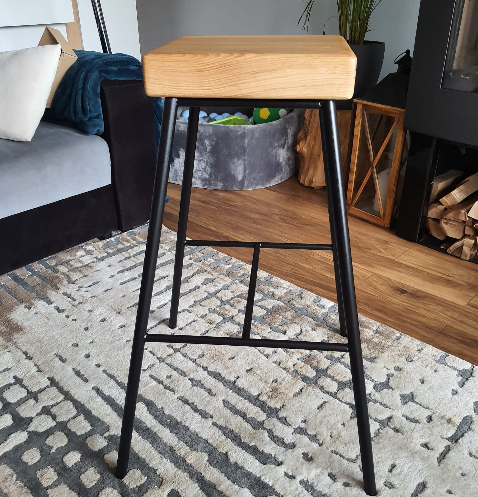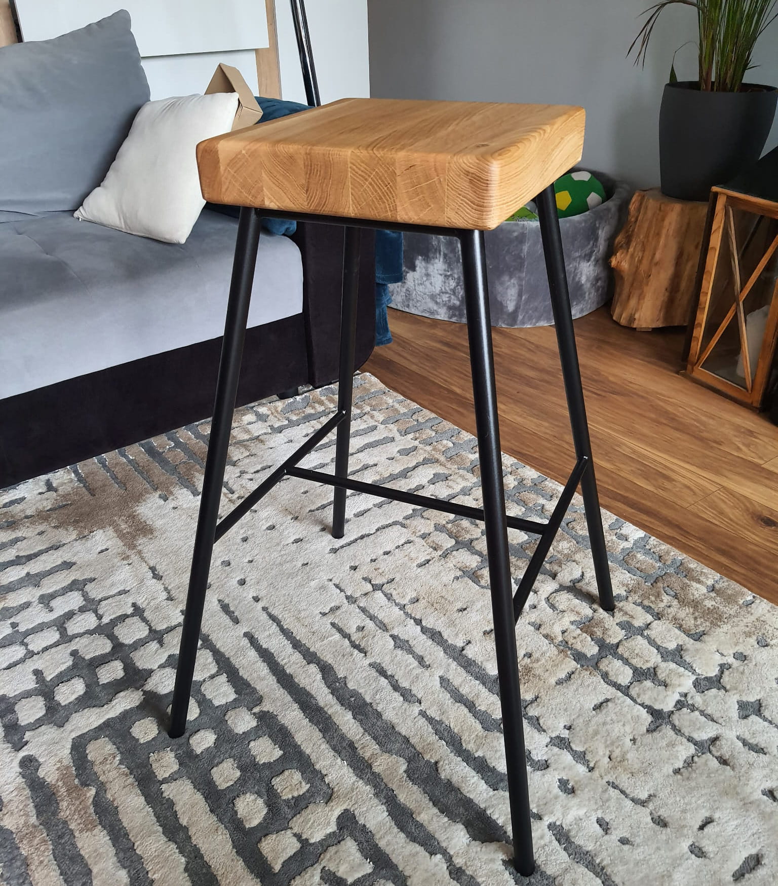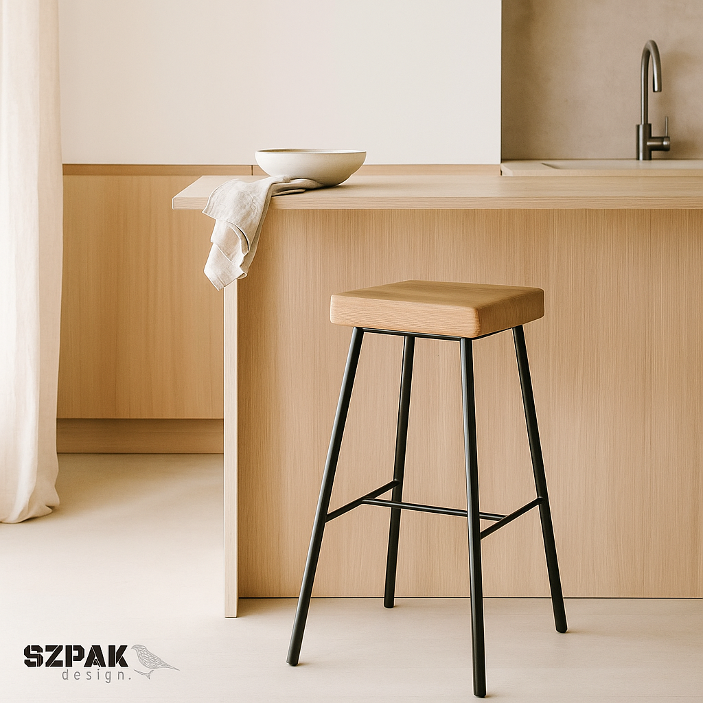 Stołek barowy z siedziskiem drewnianym