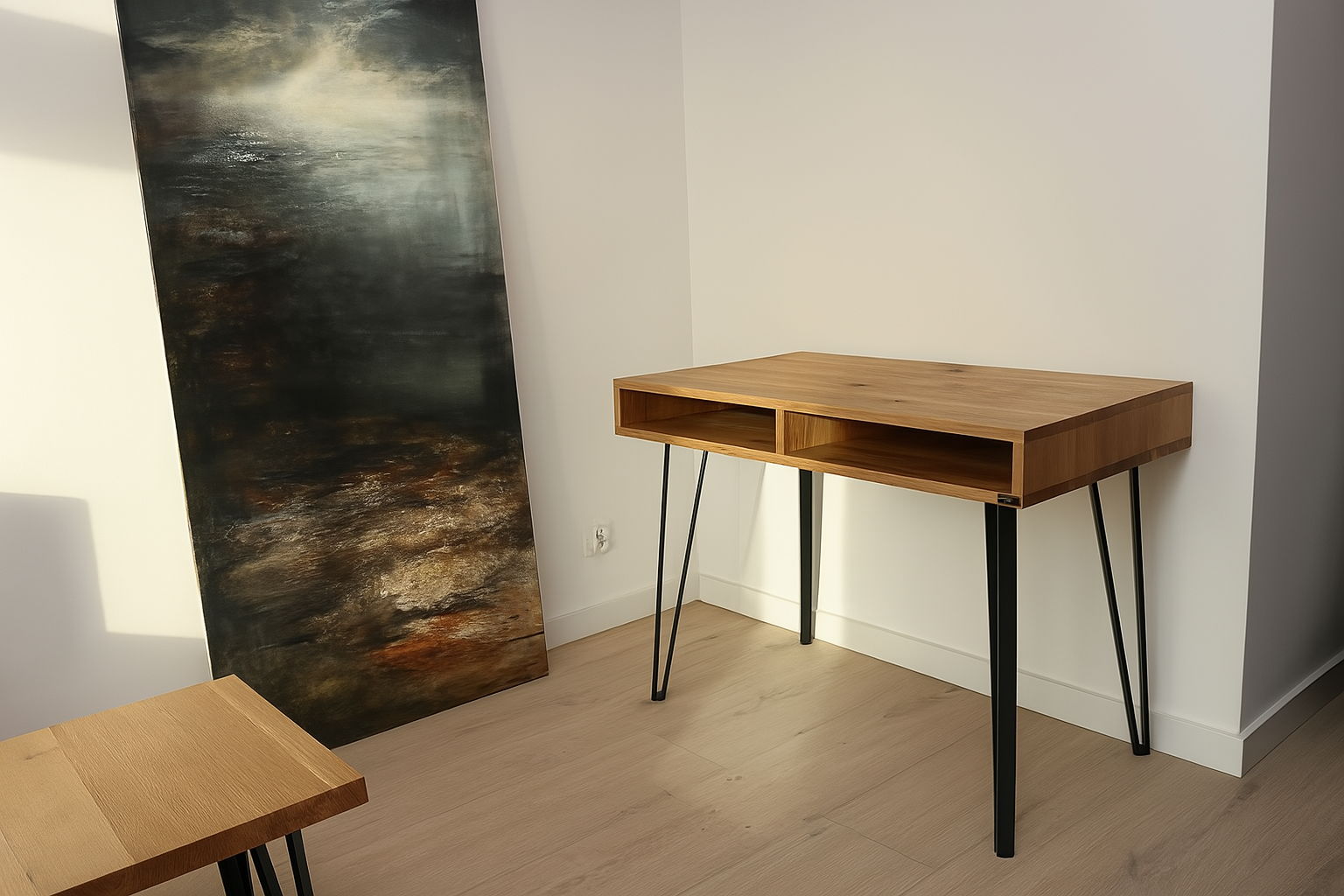 Toaletka „LUNA” to subtelne połączenie naturalnego drewna dębowego z lekką, nowoczesną konstrukcją. Zaprojektowana z myślą o estetyce i funkcjonalności, idealnie sprawdzi się w sypialni, garderobie lub salonie jako miejsce do makijażu, pracy lub ekspozycji dodatków. Prosty kształt i smukłe, metalowe nogi nadają meblowi wizualnej lekkości, nie odbierając mu charakteru.